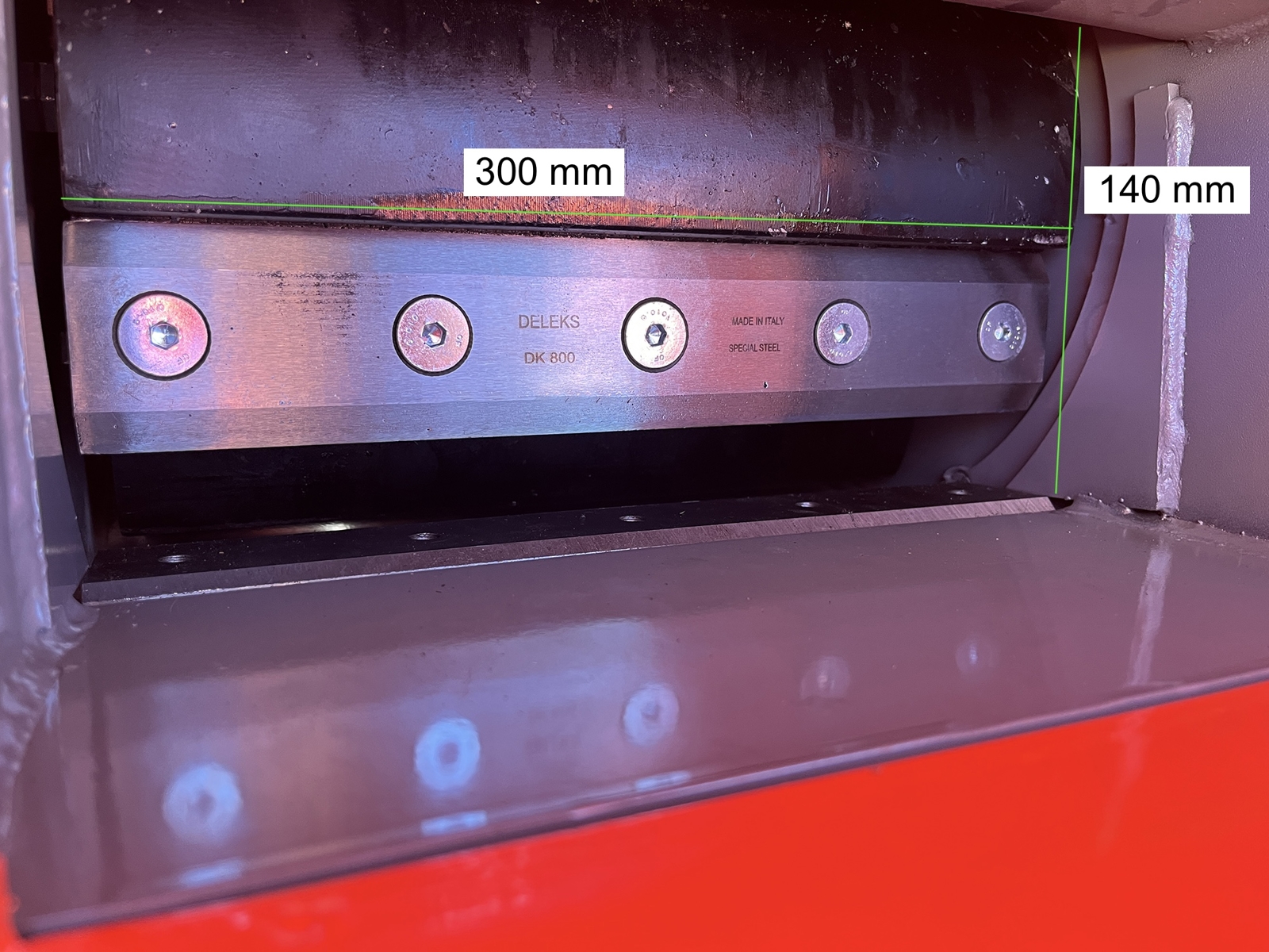 The machine is supplied with two reversible cutting blades already installed on the drum. An additional spare set of 2 reversible blades is included free of charge to ensure operational continuity and reduce downtime.