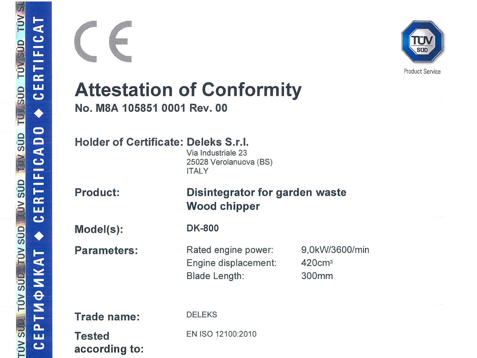 TÜV SÜD certification.