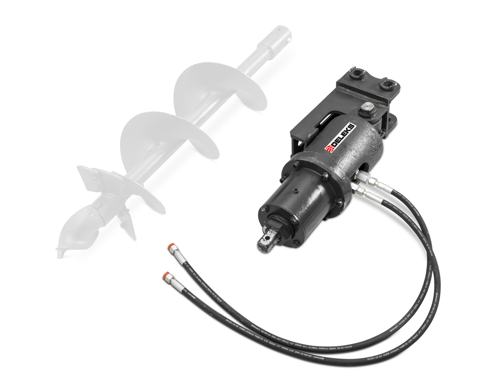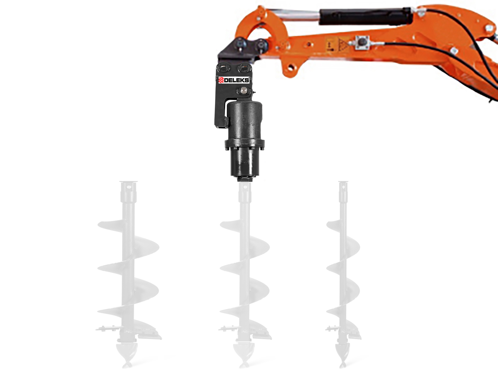 DELEKS® hydraulic earth drill / rotator is suitable on small excavators, wheel loaders, farm loaders or tractors with front loaders.