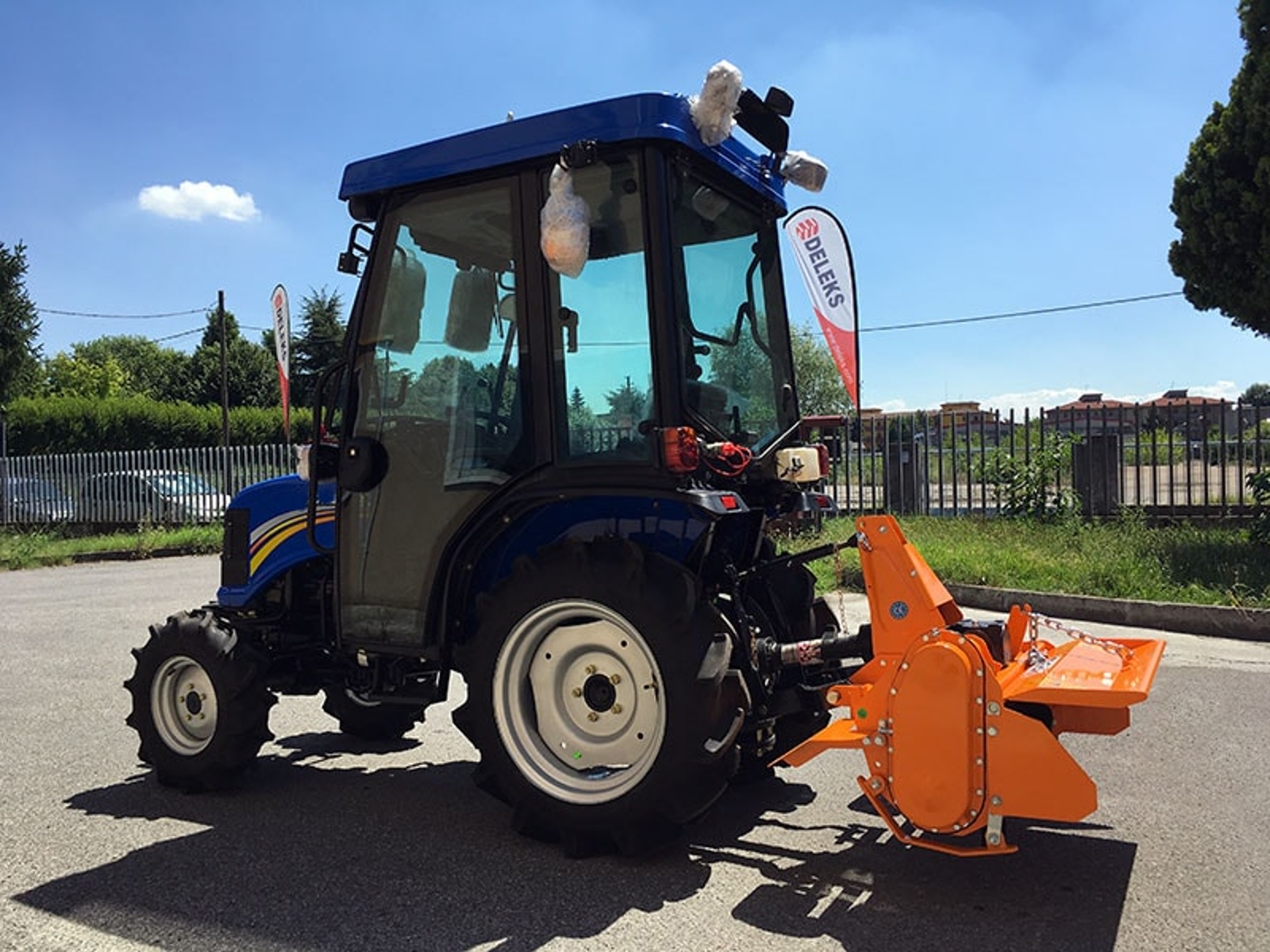 Light rotavator tiller with sideshift DELEKS® for tractors like Kubota, Iseki, New Holland, John Deere - PTO shaft included.