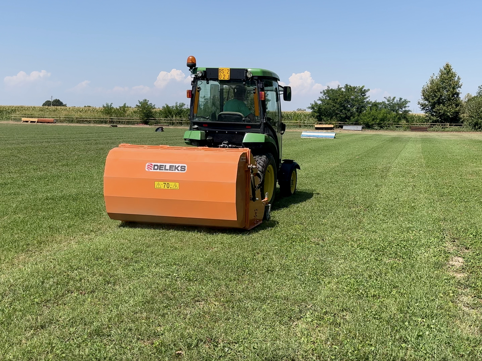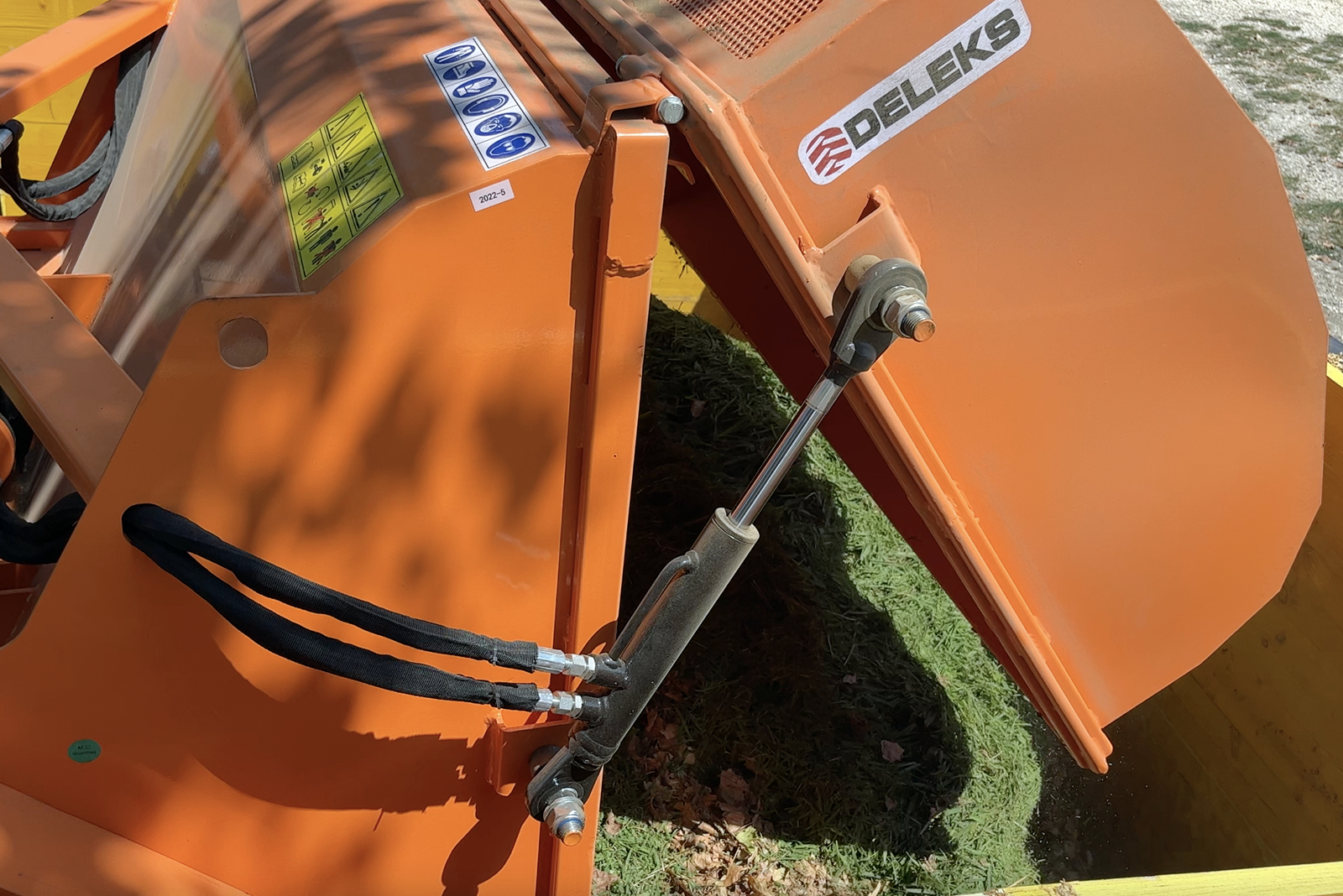 DELEKS® PANDA-120 Profi-Mulcher mit Grasfangkorb / Auffangbehälter / Sammelwanne hydrl. – geeignet zum Mähen von Sportplätzen oder Weinbergen. Gelenkwelle mit Sicherheitsbolzen.
