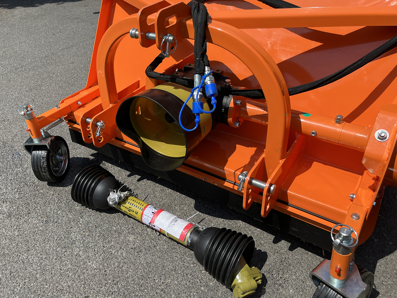 SCHLIESSENDELEKS® PANDA-120 Profi-Mulcher mit Grasfangkorb / Auffangbehälter / Sammelwanne hydrl. – geeignet zum Mähen von Sportplätzen oder Weinbergen. Gelenkwelle mit Sicherheitsbolzen.