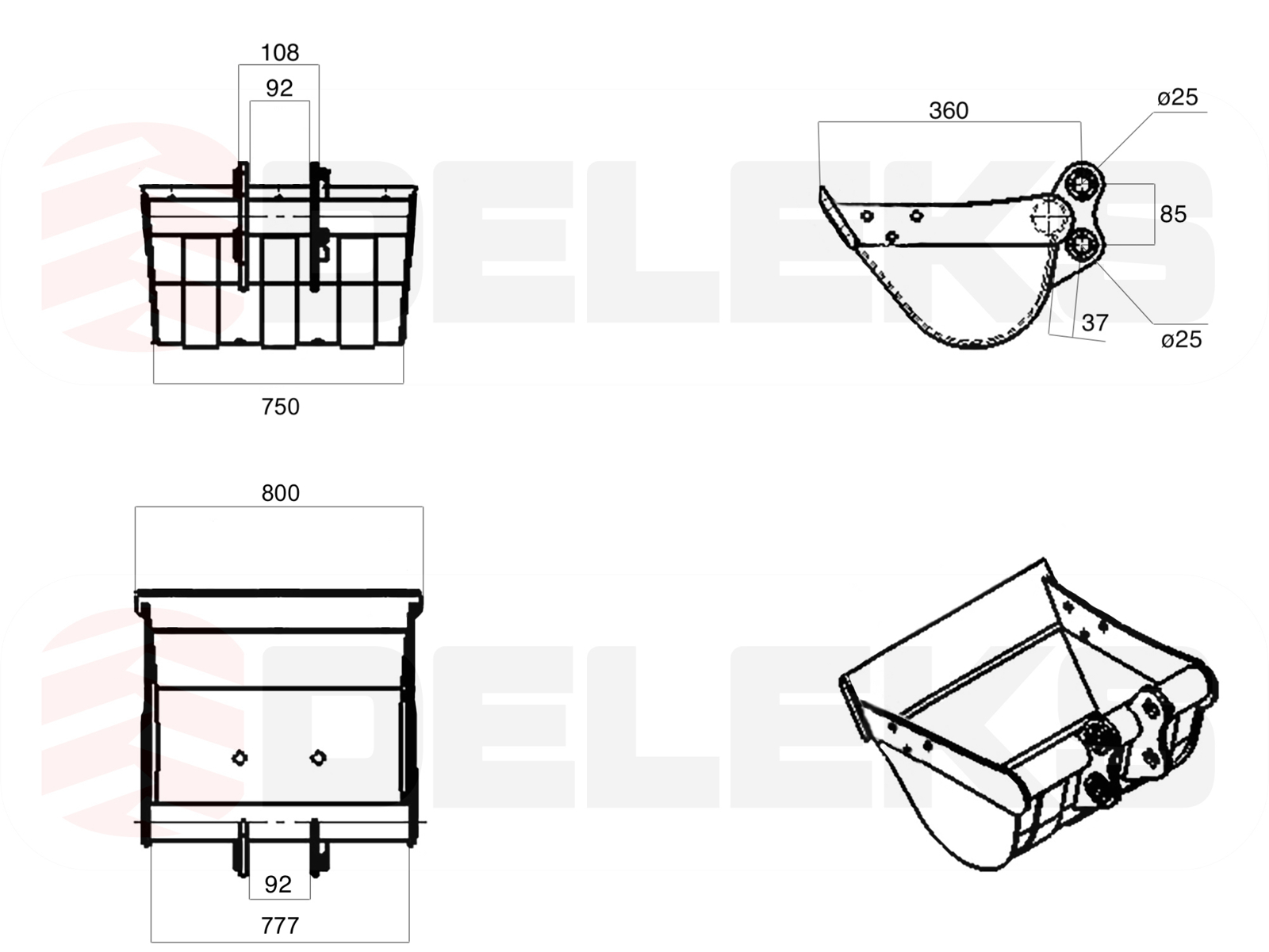 Tilt Bucket 80cm, for M80 - M100 DELEKS® Miniexcavators, Tilting Ditch Cleaning Bucket, general duty.
