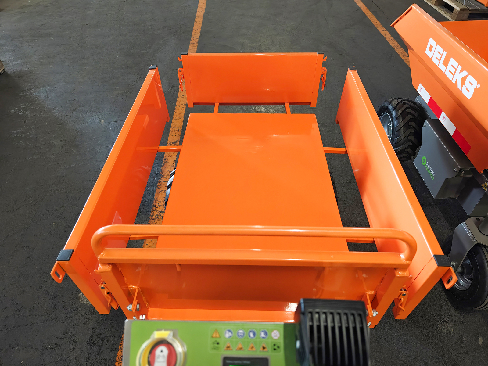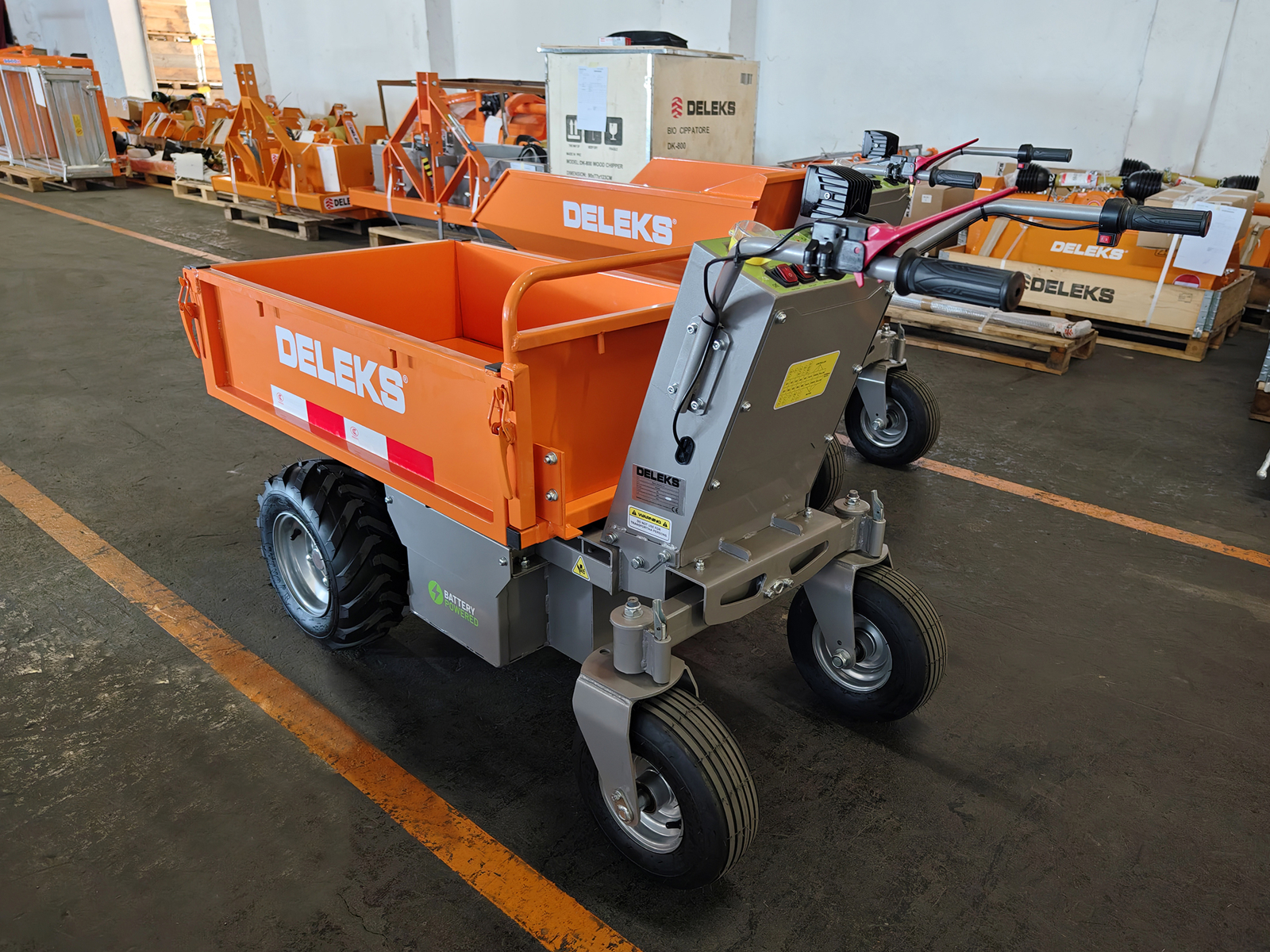 DELEKS® XE-500Hf electrified wheelbarrow for wooden logs - Minidumper with electric motor, hydraulic tipping, load 500kg.