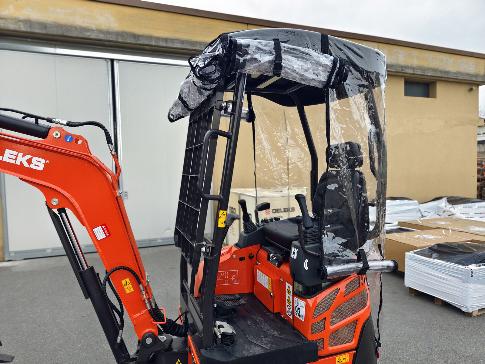 Whether the weather cooperates or not, the rain and wind cover is the perfect solution for the DELEKS® M180 mini excavator.