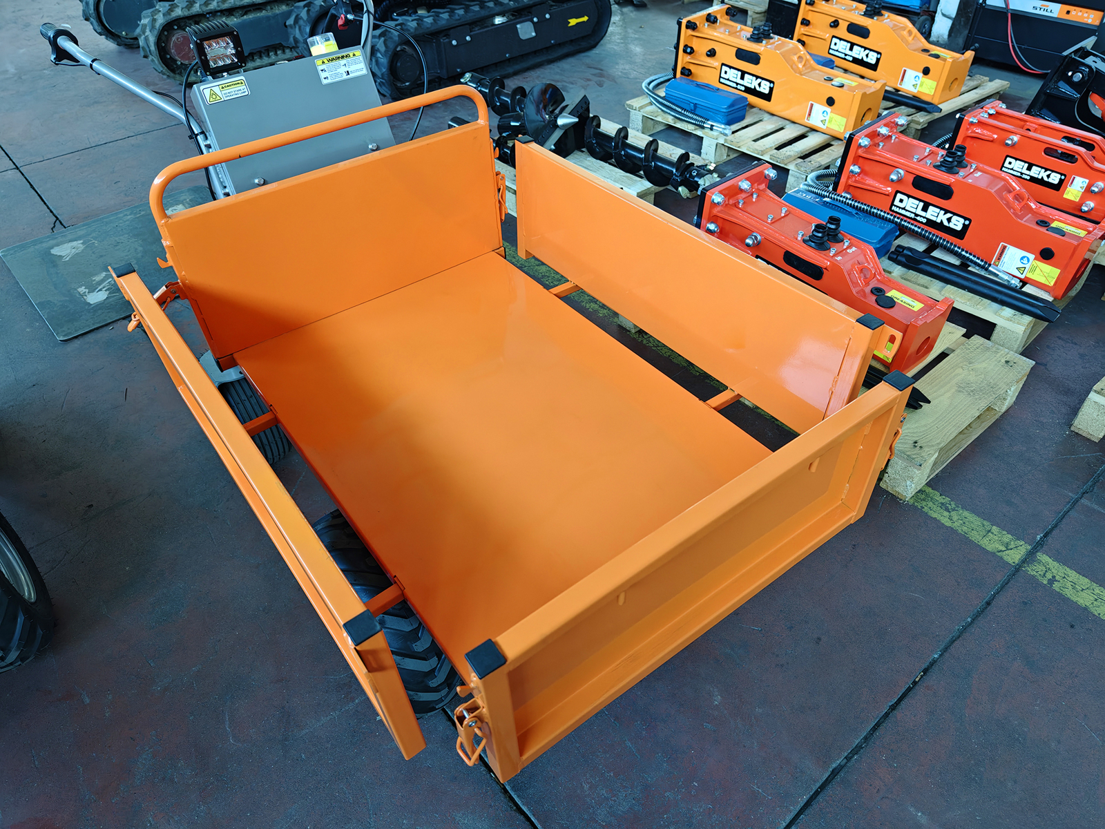 DELEKS® XE-500f electrified wheelbarrow for wooden logs - Minidumper with electric motor, manual tipping, load 500kg.
