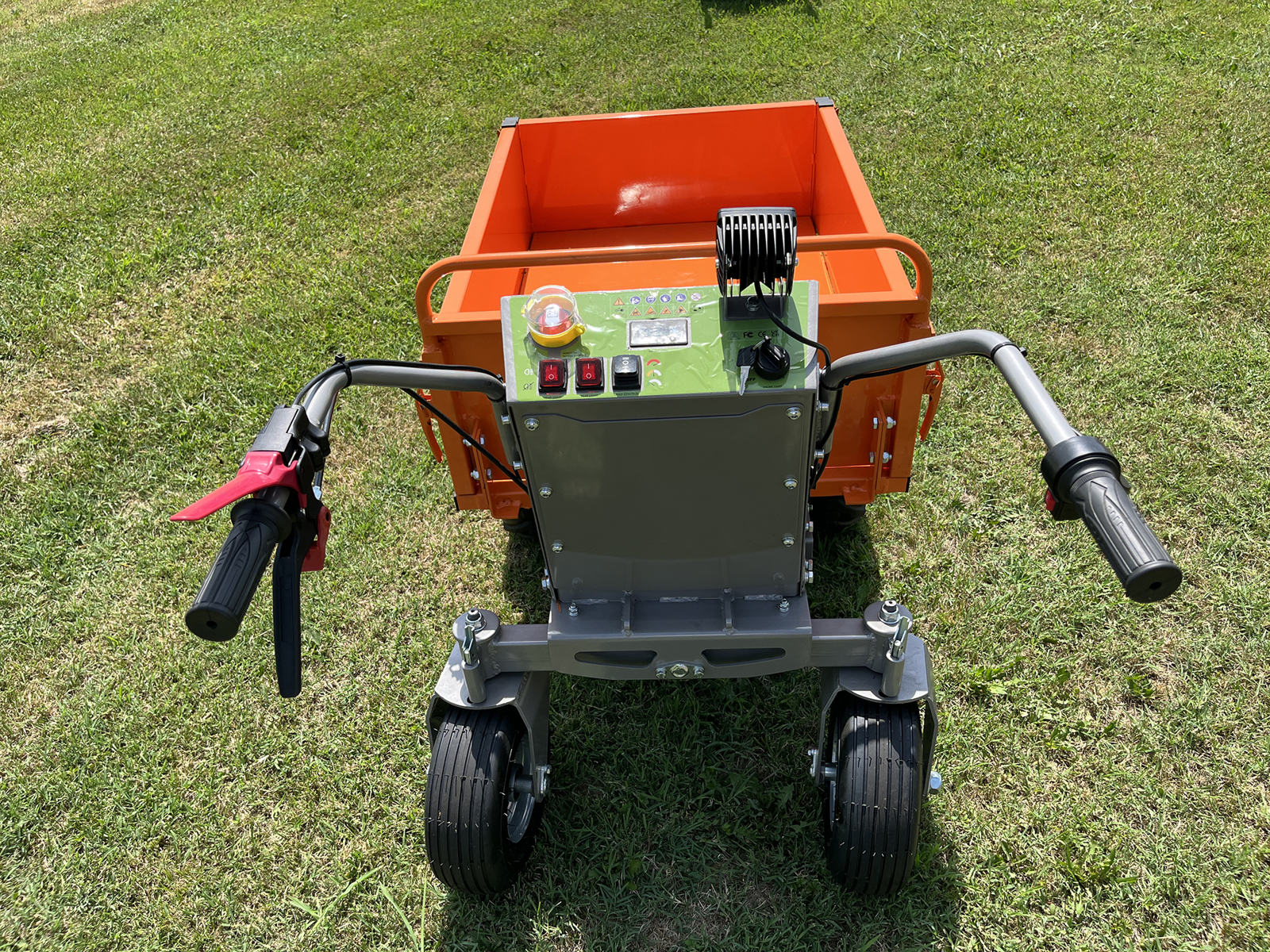 The electric wheelbarrow is supplied with 4*12V / 32Ah lead batteries for an autonomy of about 7 hours, depending on the type of use.