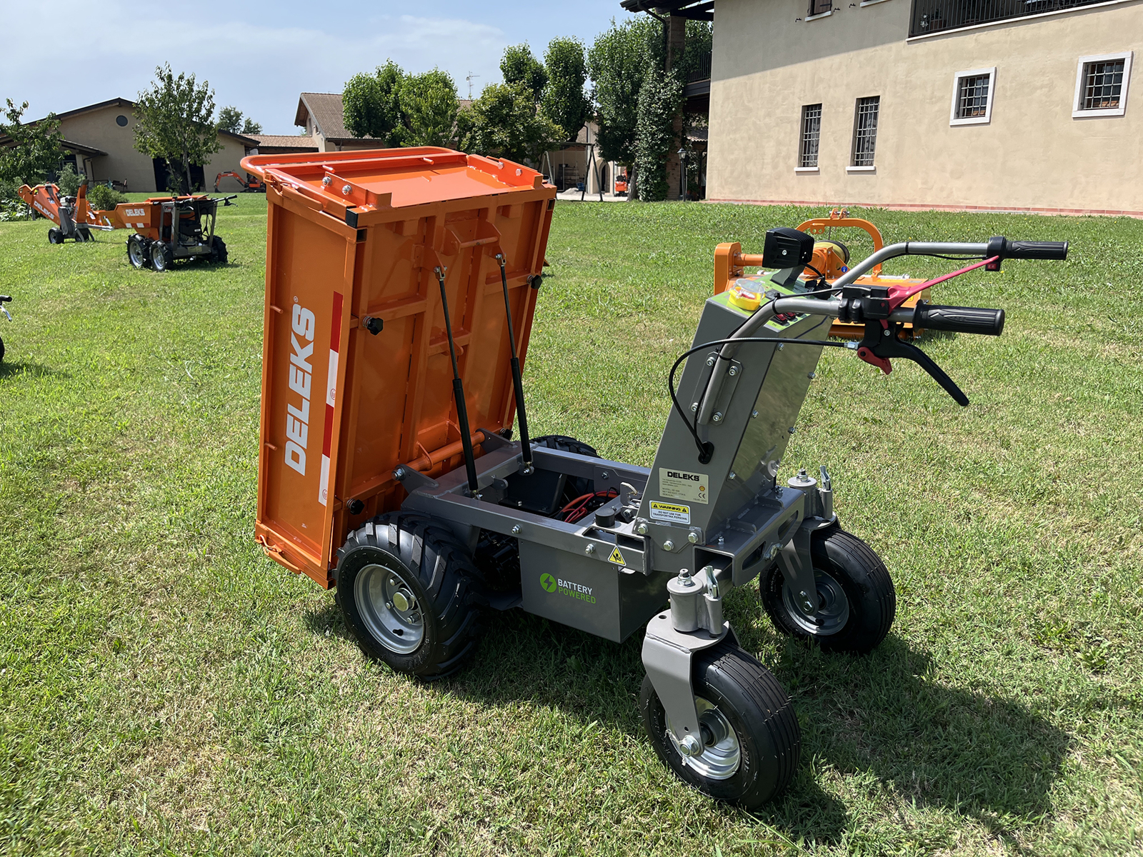 This DELEKS® wheelbarrow with electrified motor can carry a load of 500 kg, it does not make any noise, it is therefore ideal in landscaping, riding stables, greenhouses or stables, for transporting waste, shrubs, wood, tools, etc.