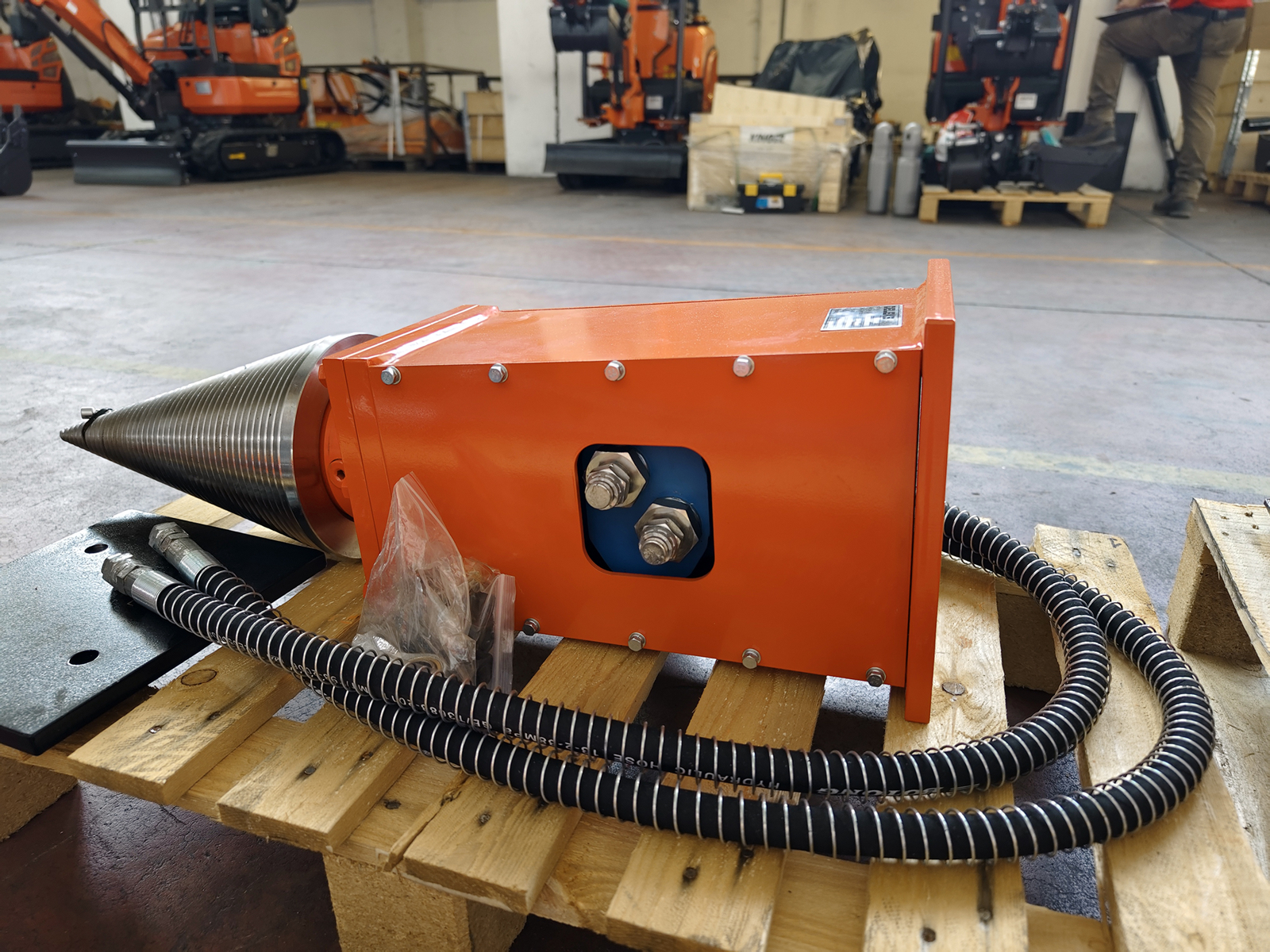 CLOSEDELEKS® LSP-12 hydraulic log splitter for 2.0-4.0 ton miniexcavators| cone splitter, Log and Stump Screw | Excavator Attachment