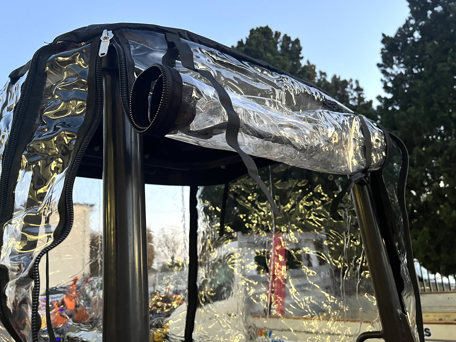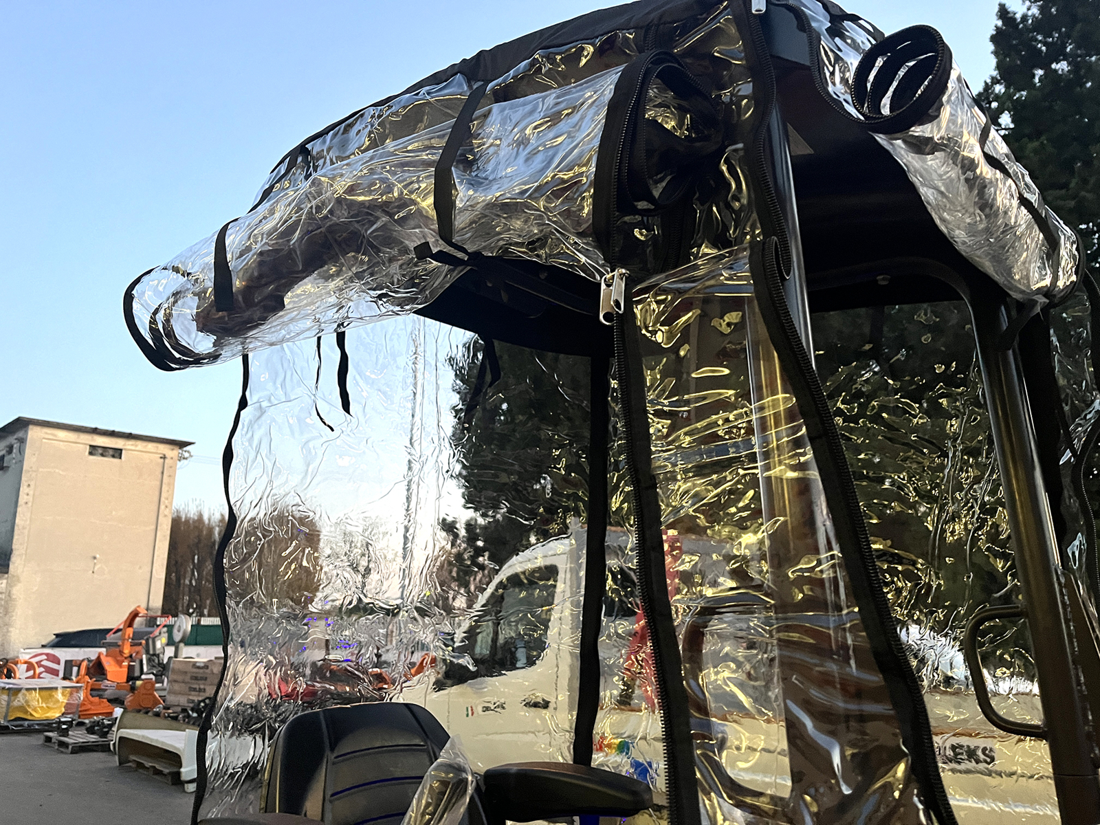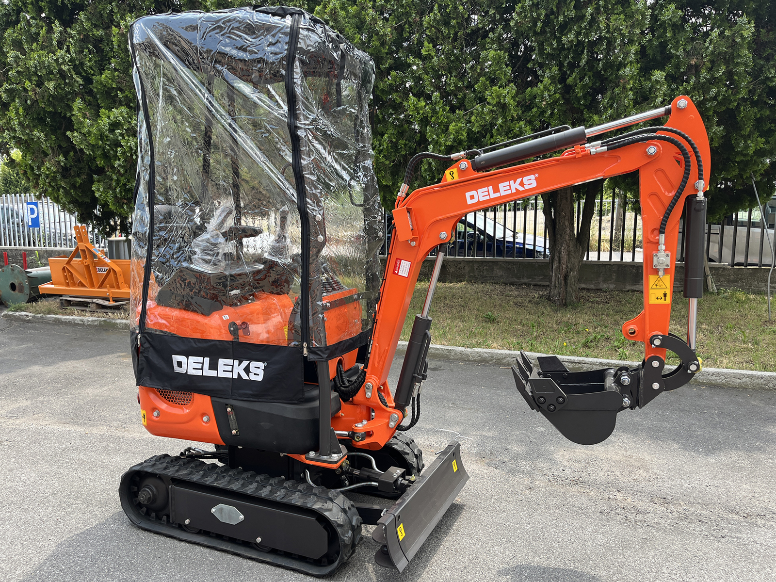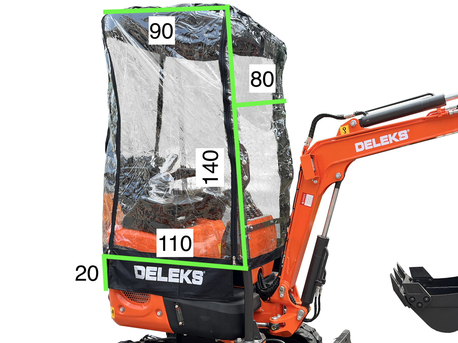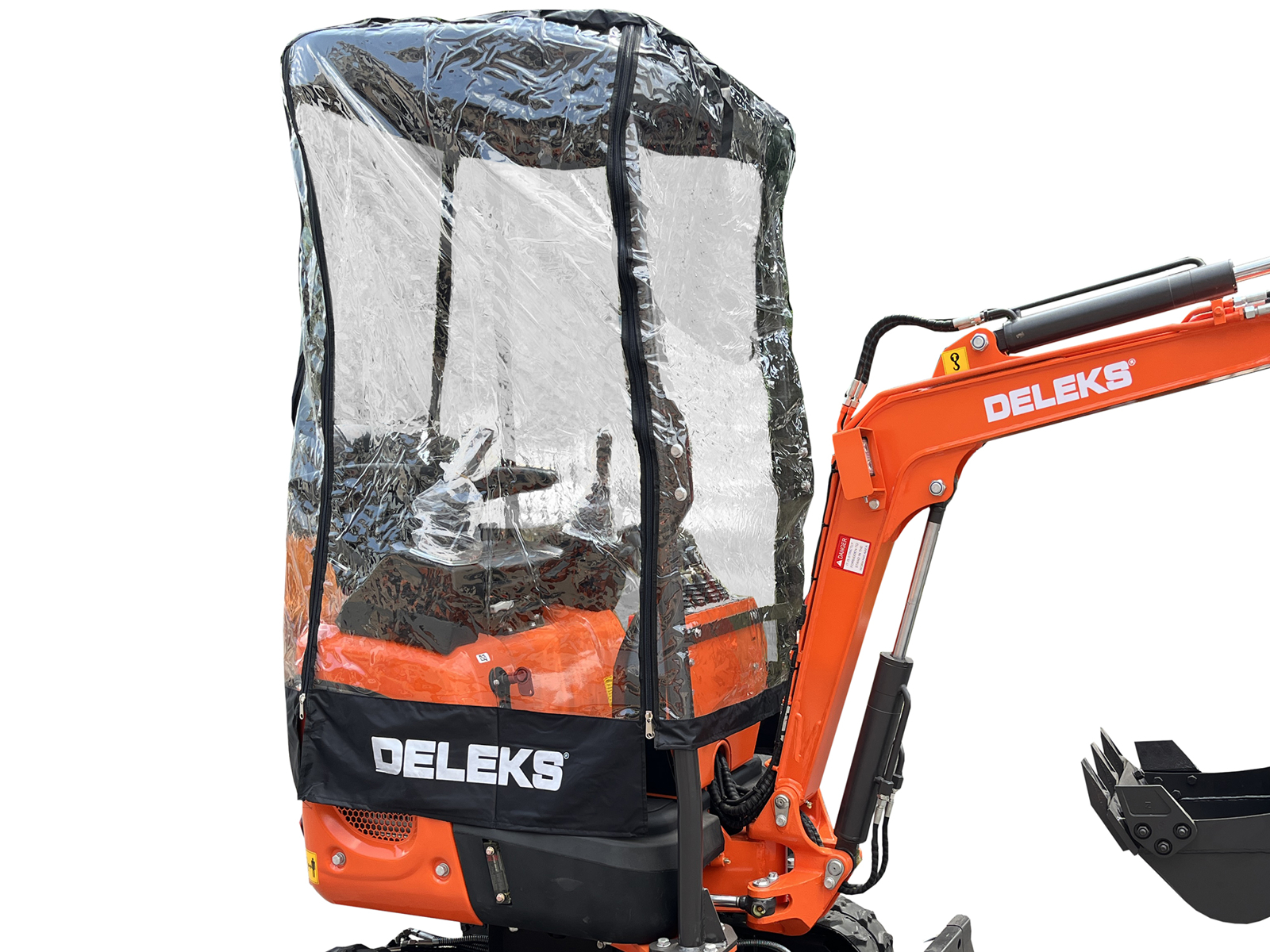 DELEKS® protective cover against wind and rain, specifically designed for DELEKS® mini excavators M100, M100se, M130, S120.