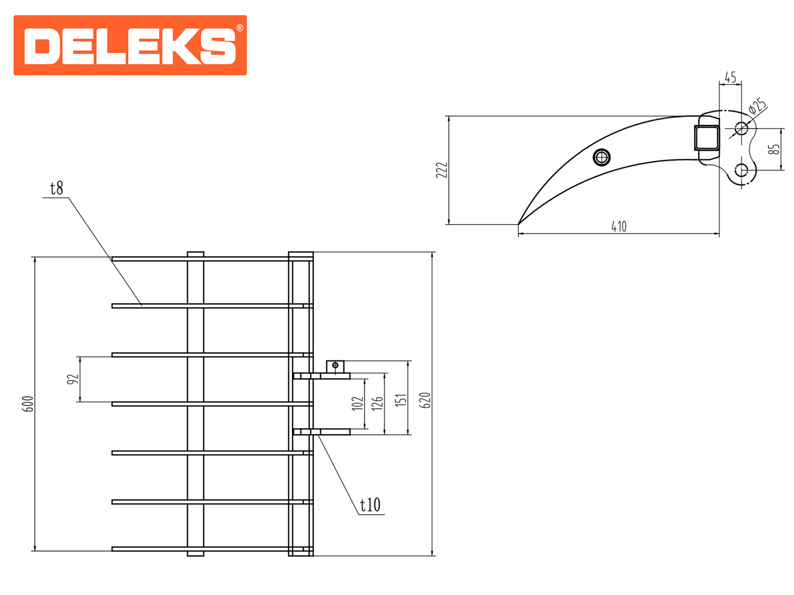 Rake, Multiripper bucket for miniexcavator DELEKS® S100 and KUBOTA K008-3, U10-3, K008-5, U10-5.